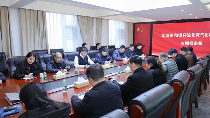 近日,鄭州榮盛窯爐工程技術有限公司組織召開濱州市北海信和新材料有限公司氧化鋁四分公司3臺84000Nm³/h循環流化床氣化爐項目專題推進會議。集團董事長楚科奇、總經理王海軍出席會議并部署工作,生產、技術、采購、項目管理等部門負責人參加會議。